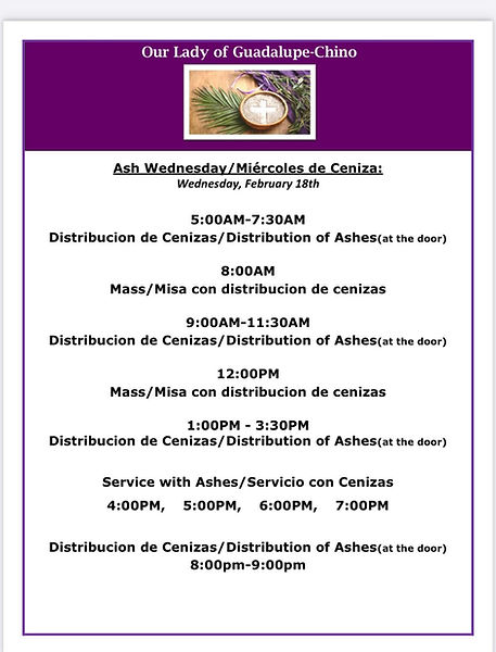 “Our Lady of Guadalupe, Chino is a strong faith community, continuing the mission of Christ, guided by the Holy Spirit to embrace our multi - cultural parish to serve one another by proclaiming the Good News to nourish all people."